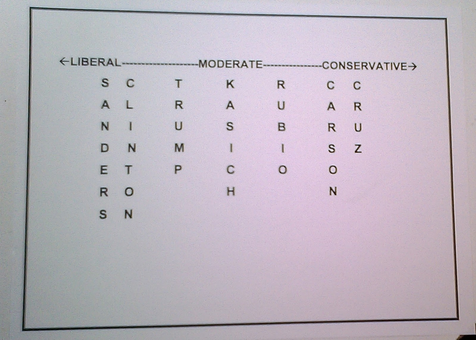 Before we get to the list counting down to the worst candidate in this year's Presidential Election from the current crop of candidates, let's look at where the candidates can be found on a continuum of liberal to conservative.